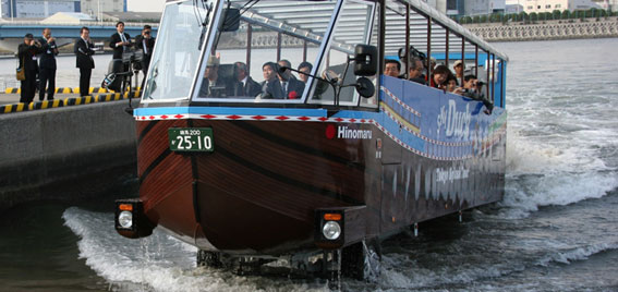I Japans huvudstad Tokyo har ett sightseeingföretag etablerat en ny form av sightseeing med buss och till sjöss utan att passagerarna behöver kliva av och byta färdmedel. Istället använder man sig av en fullstor amfibiebuss, Sky Duck, som tar sig fram lika enkelt på land som i vattnet.