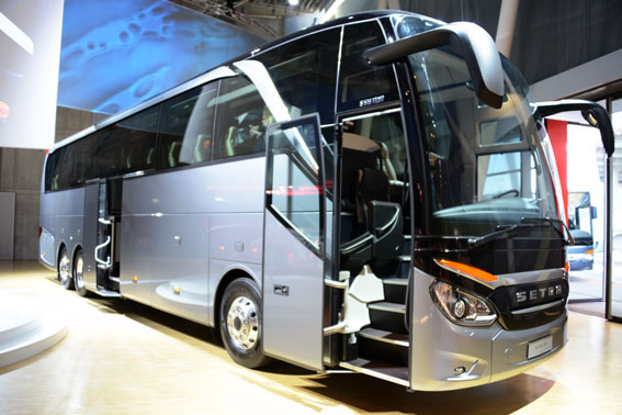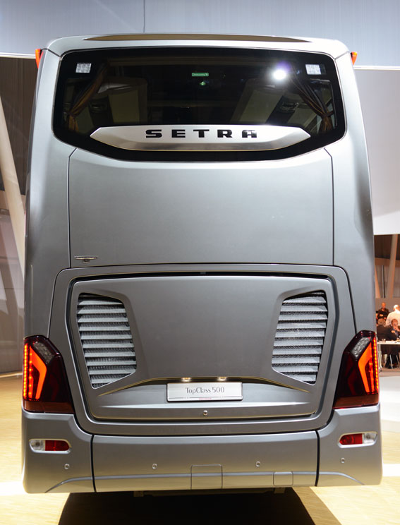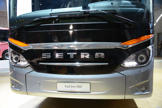 På plats där kommer också sprillans nya Setra TopClass 500 att finnas. Designmässigt går det inte att missta sig på att det är Setras prestigebuss.