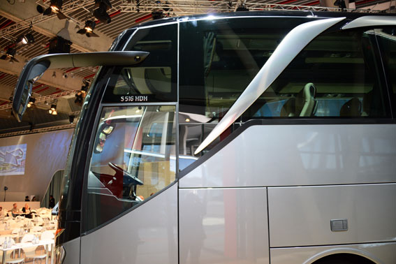 Den buss som visades i Stuttgart var en 516 HDH med ny, mer aerodynamisk och samtidigt mycket elegant front och akter. Det karakteristiska, mångåriga designgreppet La Linea finns kvar men har förnyats på ett elegant sätt.