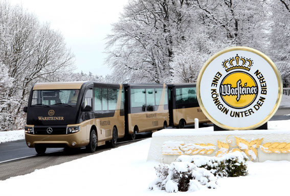 Många som har besökt Tyskland har säkert svalkat strupen med en Warsteiner, ett av landets mer kända ölmärken. Det jättelika bryggeriet, som ligger i staden Warstein, är också ett populärt besöksmål för turister och andra ölintresserade. 50 000 besökare om året tar man emot – och skjutsar runt i ett särskilt öltåg. Eller är det en ölbuss med släp? Eller ett ölbusståg?