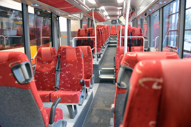 Interiören i den buss som Omnibuslinjen Habo Hjo har beställt. Foto: Ulo Maasing.