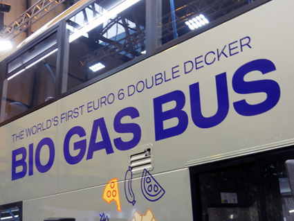 Även Scania kunde på Euro Bus Expo i Birmingham presentera en världspremiär – världens första biogasdrivna dubbeldäckare som klarar euro 6-normen. De bussar som man visar på mässan är karosserade av brittiska ADL, Alexander Dennis. Första kund är Reading Buses som kör lokaltrafik i staden Reading, väster om London.