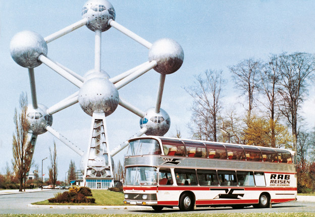 Neoplan Skyliner fyller 50. Här är bussen vid Atomium i Bryssel 1967. Foto: MAN.