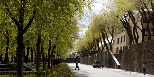 Snart med förarlös trafik. En av alléerna på campusområdet vid Danmarks Tekniska Universitet i Lyngby, Köpenhamn. Foto: DTU.