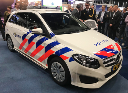 En av de första polisbilarna från VDL till holländsk polis visades nyligen på en mässa i Rotterdam. Foto: VDL.