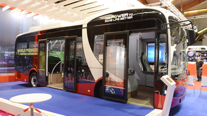BYD lanserade sin nya, batteridrivna midibuss på Busworld i Kortrijk i höstas. Foto: Ulo Maasing.