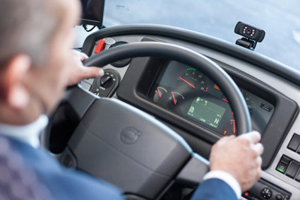 Säkerhetssystemet utgörs av en kamera som sitter på ratten kopplad till förarsätet. Om kameran registrerar avvikande rörelsemönster hos föraren, som skulle kunna tyda på trötthet eller bristande koncentration, vibrerar sätet. Samtidigt skickas en signal till trafikledningen. Foto: Datik.