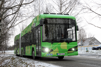En av de elledbussar från Hybricon som idag rullar i Umeå. Nu upphandlar Umeå kommun ett 25-tal elledbussar som ska sättas i trafik sommaren 2019. Foto: Ulo Maasing.
