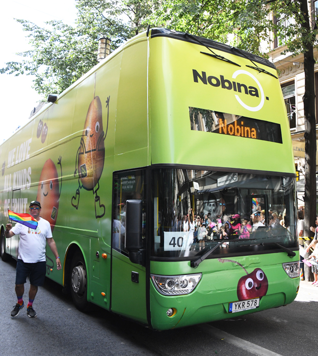 Nobina deltog i Prideparaden med en spektakulärt dekorerad dubbeldäckare…