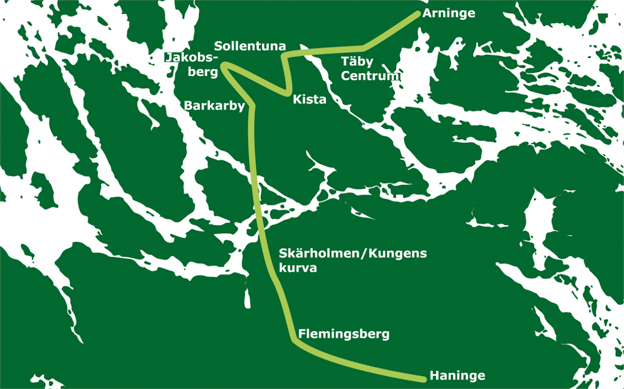 Expressbusslinjen ska gå mellan regionens centrala kärnor som är: Täby Centrum – Arninge, Kista – Sollentuna – Häggvik, Barkarby – Jakobsberg, Kungens kurva–Skärholmen, Flemingsberg och Haninge centrum. Redan i närtid bör en expressbusslinje mellan Täby – Arninge och Sollentuna – Kista startas, anser Centerpartiet. Samtidigt vill man att arbetet med förbifart Södertörn påskyndas för att linjen i sin helhet ska bli möjlig.