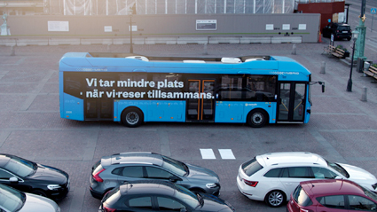 Där en buss med 40 passagerare täcker 15 meter asfalt så behöver motsvarande antal människor i bilar mellan 300 och 2 000 meter beroende på trafikens flöde och hastighet.