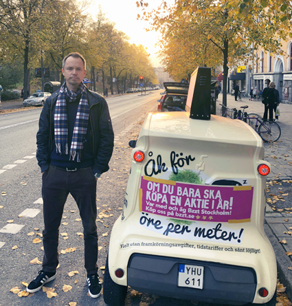 Sven Wolf, vd för Bzzt Stockholm vil att Stockholms elektriska taxipodar ska få använda busskörfälten. Foto: Bzzt.