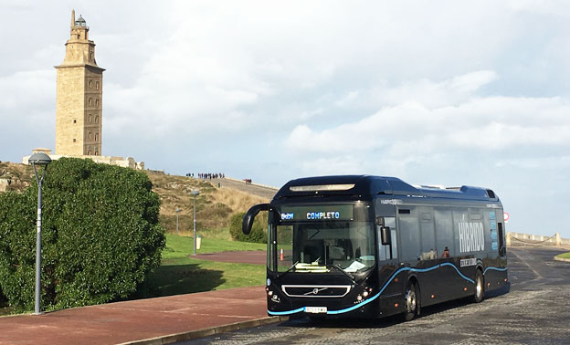 Volvo Bussar rapporterar om en fortsatt stark försäljning av företagets hybridbussar. Här en buss i trafik i Spanien, en av de starka hybridbussmarknaderna för Volvo. Foto: Volvo Bussar.