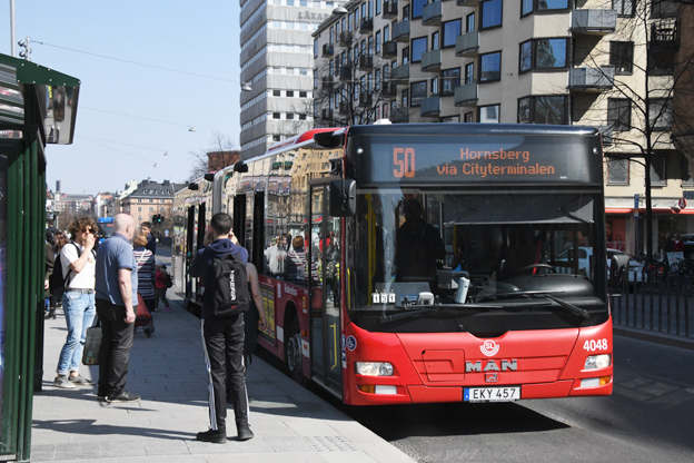 Resandet med SL:s busstrafik ökade med 3,6 procent under årets första fyra månader. Men dålig framkomlighet i innerstaden gör att SL kommer att landa klart under sitt eget mål för 2019. Foto: Ulo Maasing.