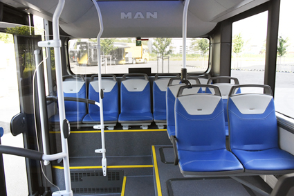 Den buss som MAN nu visade upp har 29 sittplatser förutom två klappstolar och en rullstolsplats. Inredningen kan naturligtvis varieras, allt efter köparens önskemål. Den totala passagerarkapaciteten uppges vara 88 personer, medan elbussen som 18-meters ledbuss har en maxkapacitet på 120 passagerare.
