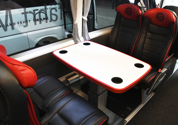 Nyligen levererade modifikationscentret i Plauen det tyska fotbollslandslagets nya buss, och sent i höstas fick Bayern München sin nya spelarbuss från Plauen – en buss som helt går i klubbens färger.