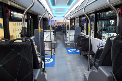 Det är en sex meter lång och 2,6 meter hög buss med tio sittplatser, men med en total kapacitet på 24 passagerare – fast då lär det bli trångt ombord.