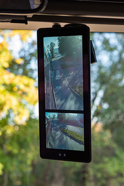 Genom att ersätta de traditionella backspeglarna med kameror minskas bussens bredd. Det är värdefullt på trånga stadsgator, men minskar också risken för skador genom att speglarna slår i vägmärken, stolpar eller andra hinder, inte minst i bussdepån. Dessutom blir synfältet bredare och bussens aerodynamiska egenskaper bättre. Kamerorna är uppvärmda och hålls därmed fria från såväl imma som från snö och is.