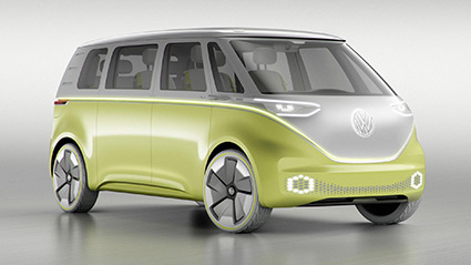 35 eldrivna, självkörande VW IS Buzz och tio självkörande Scaniabussar ska sättas i trafik till Fotbolls-VM i Qatar. Bild: Volkswagen.
