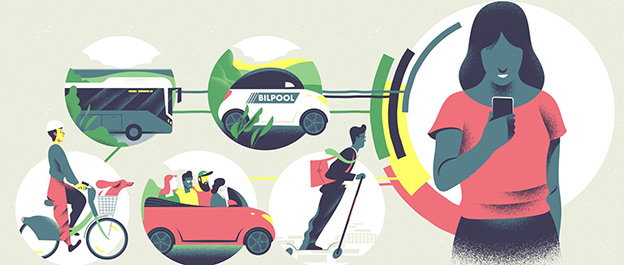 Grunden för projektet är, förstås, en ny app där resenären erbjuds ett stort utbud av olika tjänster som gör bland annat resandet och delade av resurser.