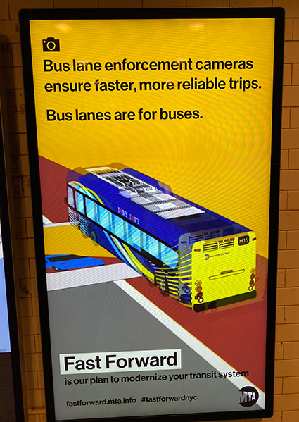 Han pekar på New York som exempel på städer som har installerat kameror i bussar. Dessa kan fota och bötfälla felparkerade bilar som står i vägen för bussarna.