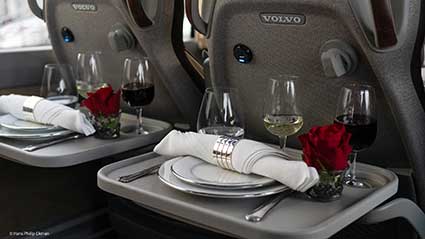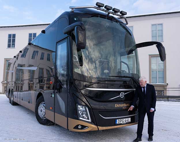 Den har fått sitt nummer efter Johan Ekmans favoritlinje i barndomen, EkmanBuss 44. Och den är EkmanBuss´nya flaggskepp, en Volvo med extra allt. När Johan Ekman köper nytt är det inga standardlösningar som gäller. Ombord ska exempelvis trerätters middagar med utvalda viner kunna serveras. Det är ju inte för inte som Johan Ekman på sitt visitkort också kan sätta titeln sommelier.