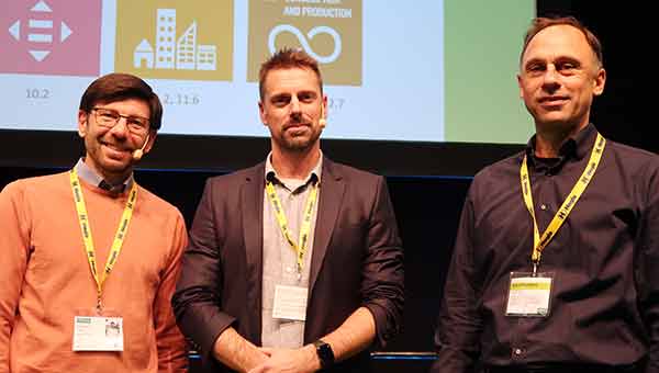 Projektet med ökad laddkapacitet presenterades av fr v Jonas Thyni, Tvinn AB, Martin Ahme, BioDriv Öst AB och Geert Schaap, Svealandstrafiken.