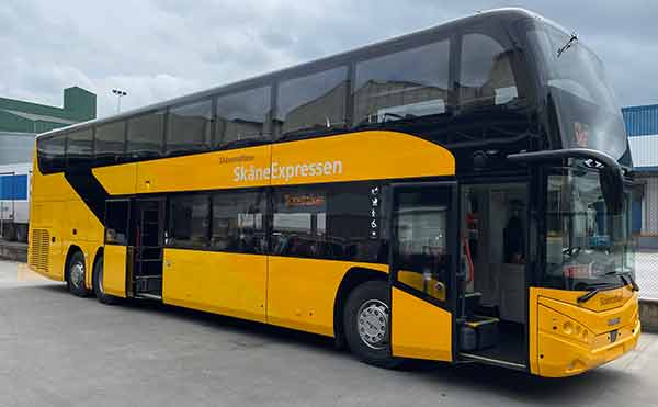 SkåneExpressen 15 kommer att trafikeras med nya dubbeldäckare från MAN/Unvi. Foto: Skånetrafiken.
