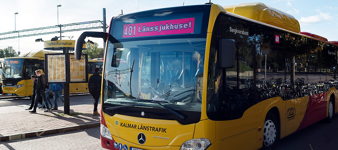 Trängseln kan vara stor på linje 401 i Kalmar. BRT kan bli lösningen på trängselproblemet och samtidigt göra att fler väljer bort bilen, Samtidigt finns socioekonomiska fördelar. Foto: Region Kalmar län.