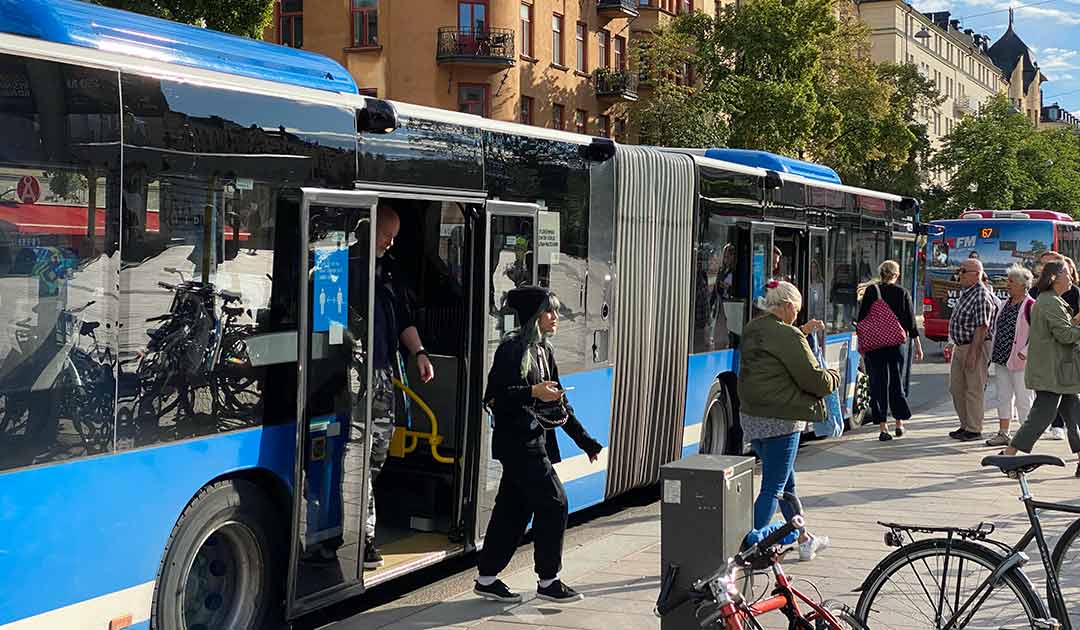 Under pandemin tappade kollektivtrafiken resenärer och marknadsandelar. Men det är möjligt att öka dess marknadsandel till 40 procent av de motoriserade resorna, enligt en ny rapport från Sveriges Bussföretag. Foto: Ulo Maasing.