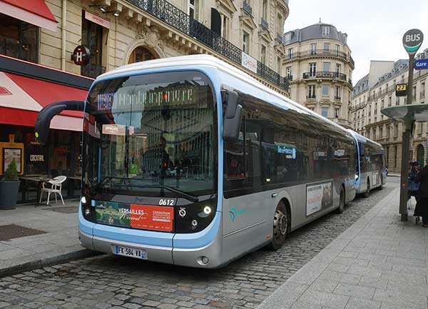 Efter att av säkerhetsskäl ha tagits ur trafik under två år kommer RATP i Paris att i sommar åter börja använda mer än 200 elbussar tv-modell Bolloré Bluebus. Foto: Kevin B/Wikimedia Commons.