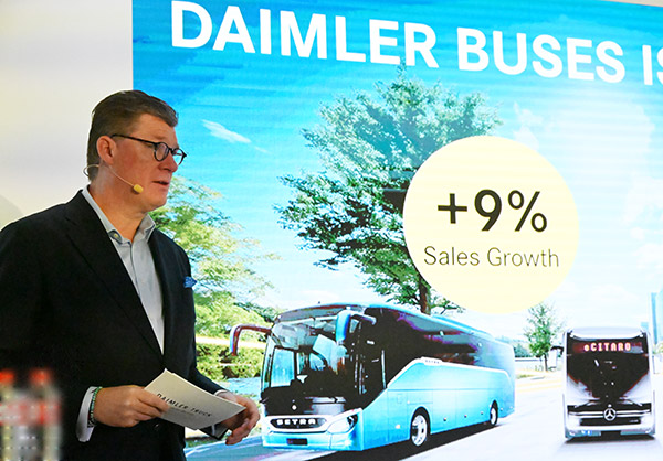 Daimlerchefen upprepade också att Daimler Buses kommer att ha eldrivna turistbussar på marknaden i slutet av det här året. Han betonade att den tekniska utvecklingen gynnar Daimler Buses ambitioner när det gäller utveckling och lönsamhet.