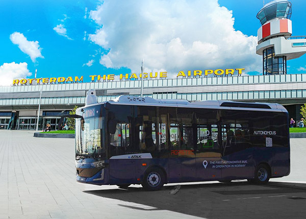Nederländerna: Från januari nästa år ska flygplatsen i holländska Rotterdam och Haag få självkörande flygbusstrafik. Det är lokaltrafiken i Rotterdam, RET (Rotterdamse Elektrische Tram) och företaget DAM Shuttles som ska sätta in två autonoma bussar från Karsan på den fem kilometer långa linjen mellan flygplatsen och en av stadens tunnelbanestationer. Trafiken ska betjäna såväl flygresenärer som anställda på flygplatsen.