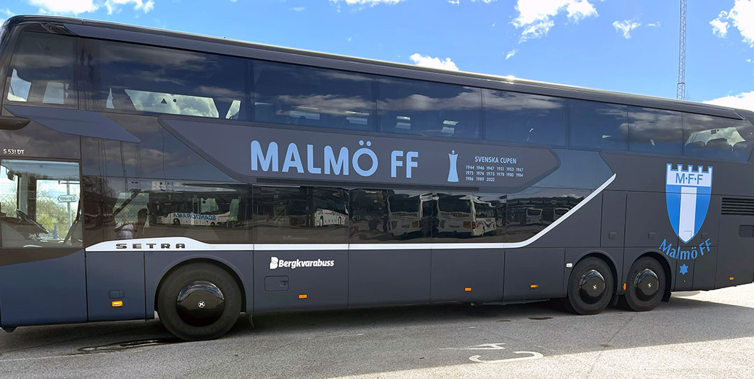 – Samarbetet mellan oss och Bergkvarabuss är väldigt bra och vi är glada att fortsatt kroka arm framåt, säger Tomas Olsson, avtalsansvarig säljare hos Malmö FF.