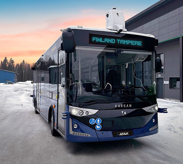 Finland får nu sin första självkörande stora buss i reguljär linjetrafik. Bussen ska trafikera en 5,8 kilometer lång linje med 17 hållplatser och 20 övergångsställen för fotgängare i Tammerfors. Bussen är en åtta meter lång Karsan e-ATAK elbuss, alltså samma modell som trafikerar den självkörande busslinjen i norska Stavanger. Den turkiska busstillverkaren Karsan satsar målmedvetet på att introducera självkörande bussar i kollektivtrafiken.