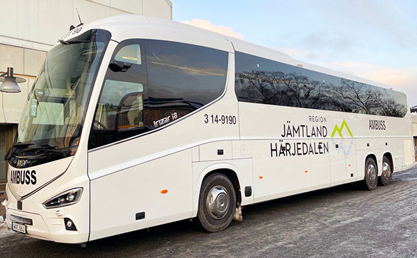 Det stora flertalet sjuresor görs med taxi, men på några håll i landet, exempelvis Region Jämtland Härjedalen, görs också en del längre sjukresor med specialinredd buss. Foto: Region Jämtland Härjedalen.