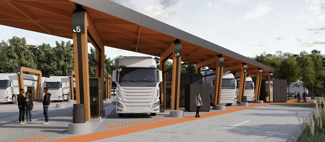 Den nya laddstationen ska ligga på en 10 000 kvadratmeter stor tomt i Ödeshög. Läget är strategiskt, 260 kilometer från Stockholm och350 från Malmö. Därmed blir stationen en viktig del av det första storskaliga, publika nätverket för eldrivna tunga fordon och bussar i Europa.