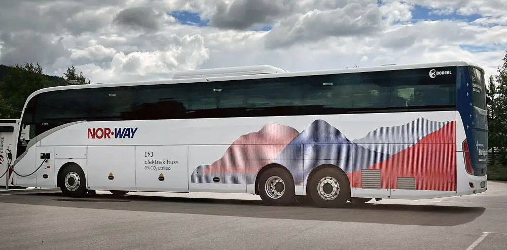 Nordens första eldrivna expressbuss sätts nu i trafik i Norge. Det är det stora norska trafikföretaget Boreal som börjar trafikera Trysilekspressen som är en av linjerna i det norska expressbussnätet Nor-Way Bussekspress. Linjen är drygt 200 kilometer lång och går från Oslo, via Gardermoen till Trysil som i öster gränsar till Dalarna.