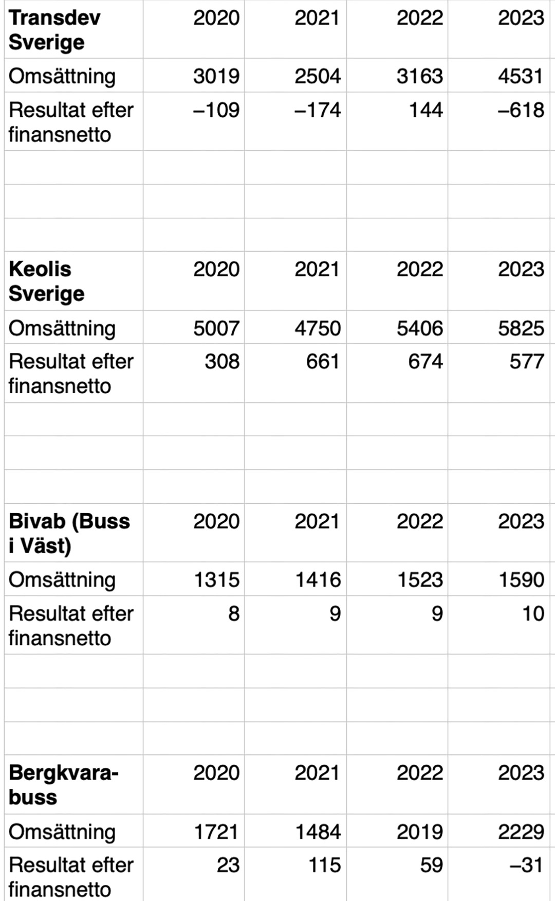 Siffrorna visar också att pandemin inte var någon katastrof för storföretagen. Tvärtom. Pandemiåren blev ekonomiskt goda för flera av storföretagen. Den främsta orsaken är att en mycket stor del av kollektivtrafiken kördes som vanligt, även under pandemin, bland annat för att undvika trängsel ombord på bussar och tåg.