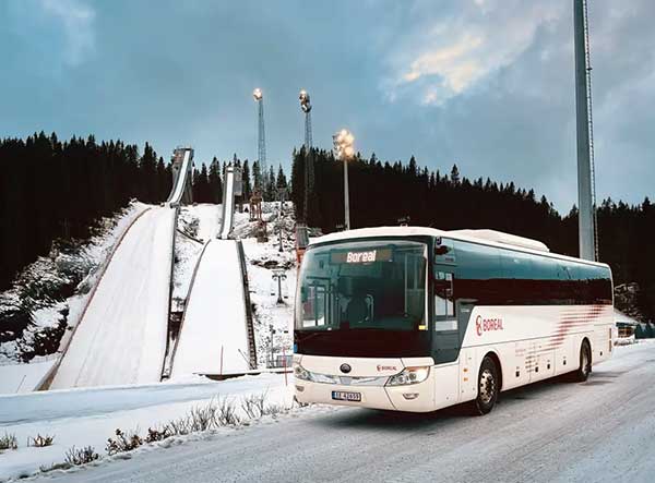 20 eldrivna turistbussar ska transportera funktionärer och tävlande vid Skid-VM i Norge. Foto: Boreal.