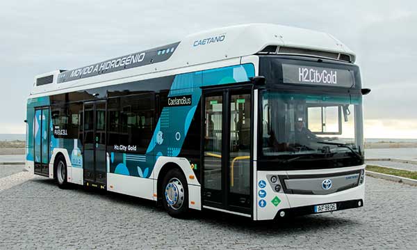 Under 2025 får Finland sina fem första bränslecellsbussar i kollektivtrafik. Bussarna är av modell Caetano H2 City Gold. Foto: Caetano.