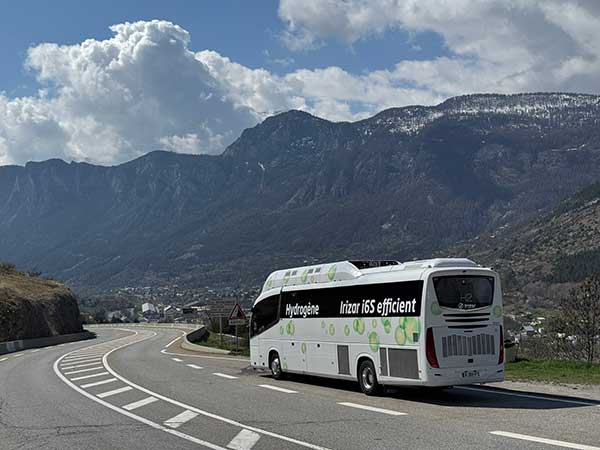 Trots körning på branta alpvägar klarar busstillverkaren Irizars vätgasdrivna bränslecellsbuss Irizar i6S Efficient Hydrogen 900 kilometer på en tank. Bussen är den första bränslecellsdrivna turistbussen i Europa. På Busworld i Bryssel hösten 2023 presenterade Irizar en prototyp av bussen.
