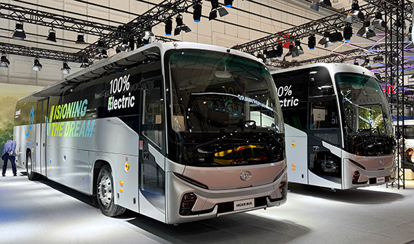 De kinesiska busstillverkarna presenterade på mässan en rad eldrivna turistbussar med räckvidd på upp till 750 kilometer på en laddning. Higer hade premiär på två batteridrivna sådana, avsedda för den europeiska marknaden. Foto: Ulo Maasing.