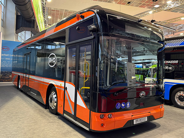 I år visade BYD två nya modeller med bladbatterier. Den ena, B12.b HF, är en normalgolvsbuss för regiontrafik som BYD har tagit fram med tanke på europeiska kunder. Det är en 12,1 meter lång buss som har ett bredare användningsområde än bara längre regionala linjer.