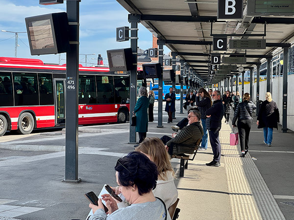 Den tillfälliga Slussenterminalen i Stockholm.Skyddet ska stärkas särskilt vid stora bytespunkter för kollektivtrafiken enligt regeringens förslag. Foto: Ulo Maasing.