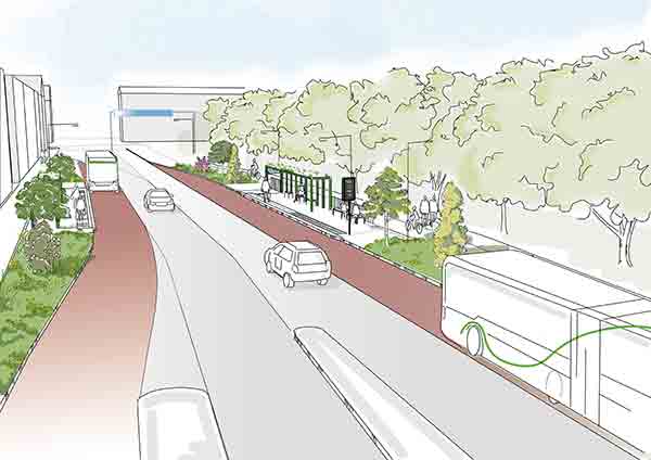 Västra Nobelgatan i Örebro anpassades för Citylinjen under 2025. Nu är det tills vidare stopp för fortsatt utbyggnad. Bild: Örebro kommun