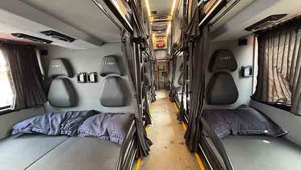 Det stora indiska expressbussföretaget LeafyBus har beställt 100 eldrivna sovbussar från Volvo- och Eicherägda VECV i Indien. Bussen på bilden är traditionellt premirdekorerad.