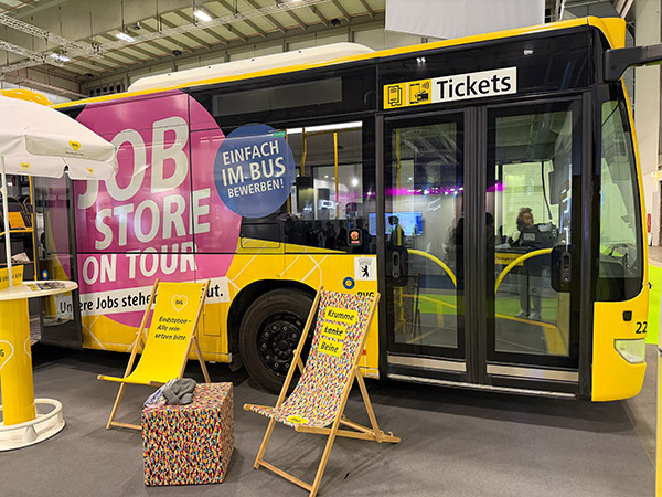 I Tyskland är bussförarbristen stor, precis som i Sverige. Lokaltrafiken i Berlin, BVG, fanns till och med på plats med en särskild jobbuss för att locka nya medarbetare till sin busstrafik.