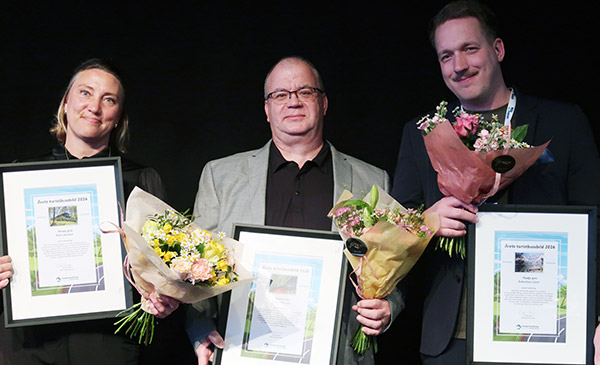 Då vinnarna inte själva var på plats på Busstorget togs priserna emot av fr v Jennie Högberg, Högbergs Buss, Petter Hörvall, Hörvalls Buss och Alexander Lönn, Lönns Buss. Foto: Paula Isaksson-