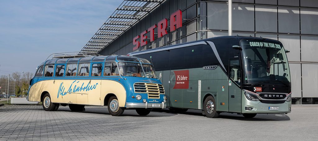 I år firar Setra sitt 75-årsjubileum. 75 självbärande år. För det är just det namnet står för: selbsttragen, det tyska ordet för självbärande. Setra är nu en del av Daimler Buses men debuterade 1951 hos den tyska tillverkaren Kässbohrer i Ulm. Nu är Setra inne på sin sjätte modellgeneration.
